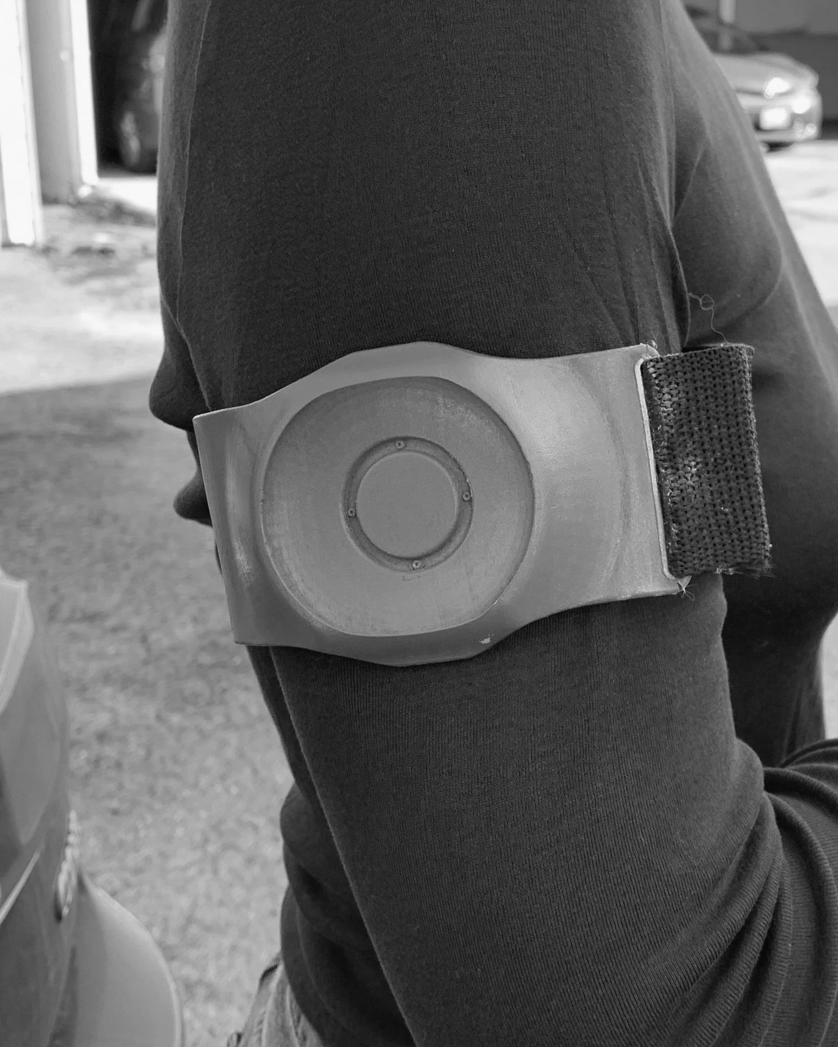 I concluded that an armband would be the easiest and fastest place for police officers to access their drone. Keeping the design as sleek as possible allows for officers to maintain full mobility and will prevent the device from getting in the way while preforming other duties.