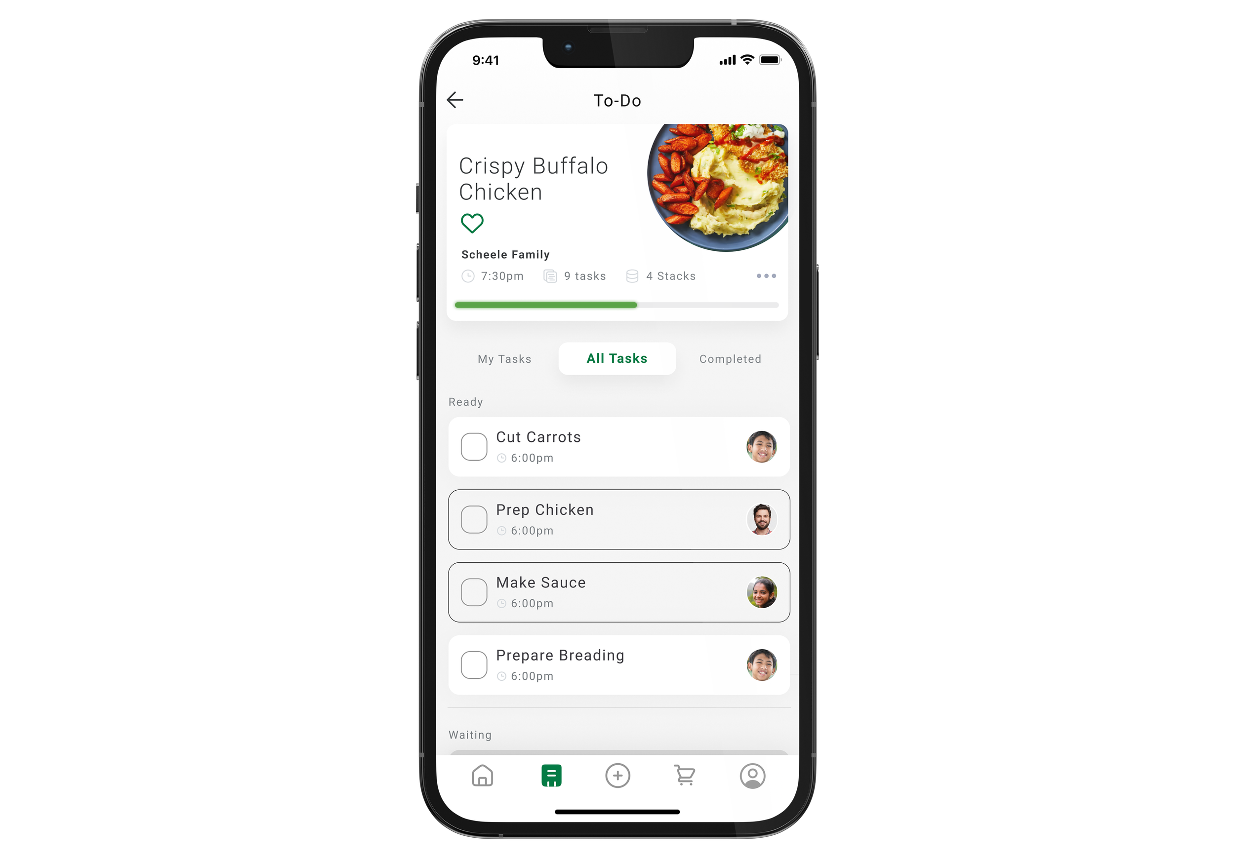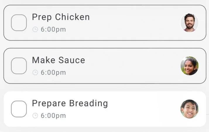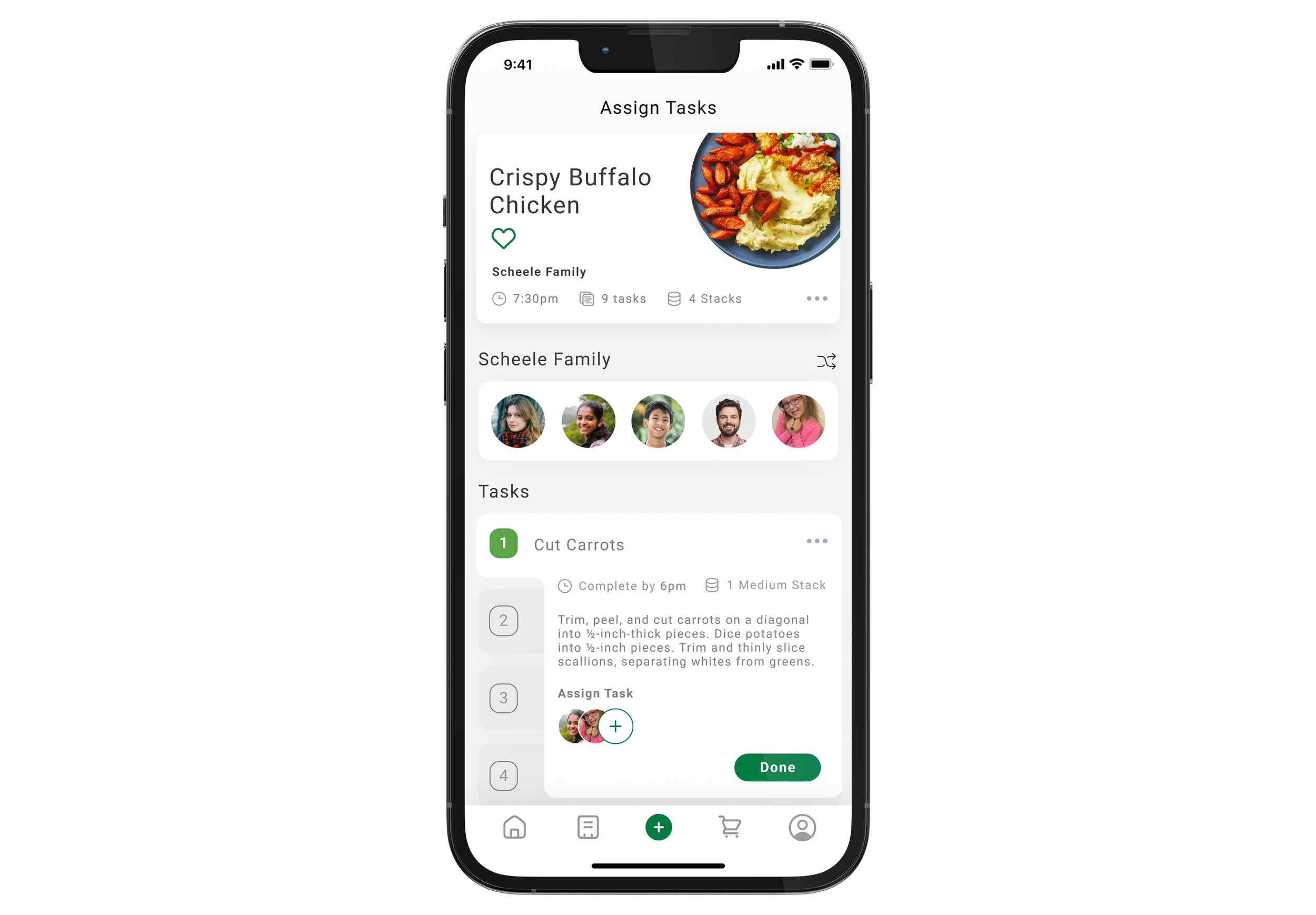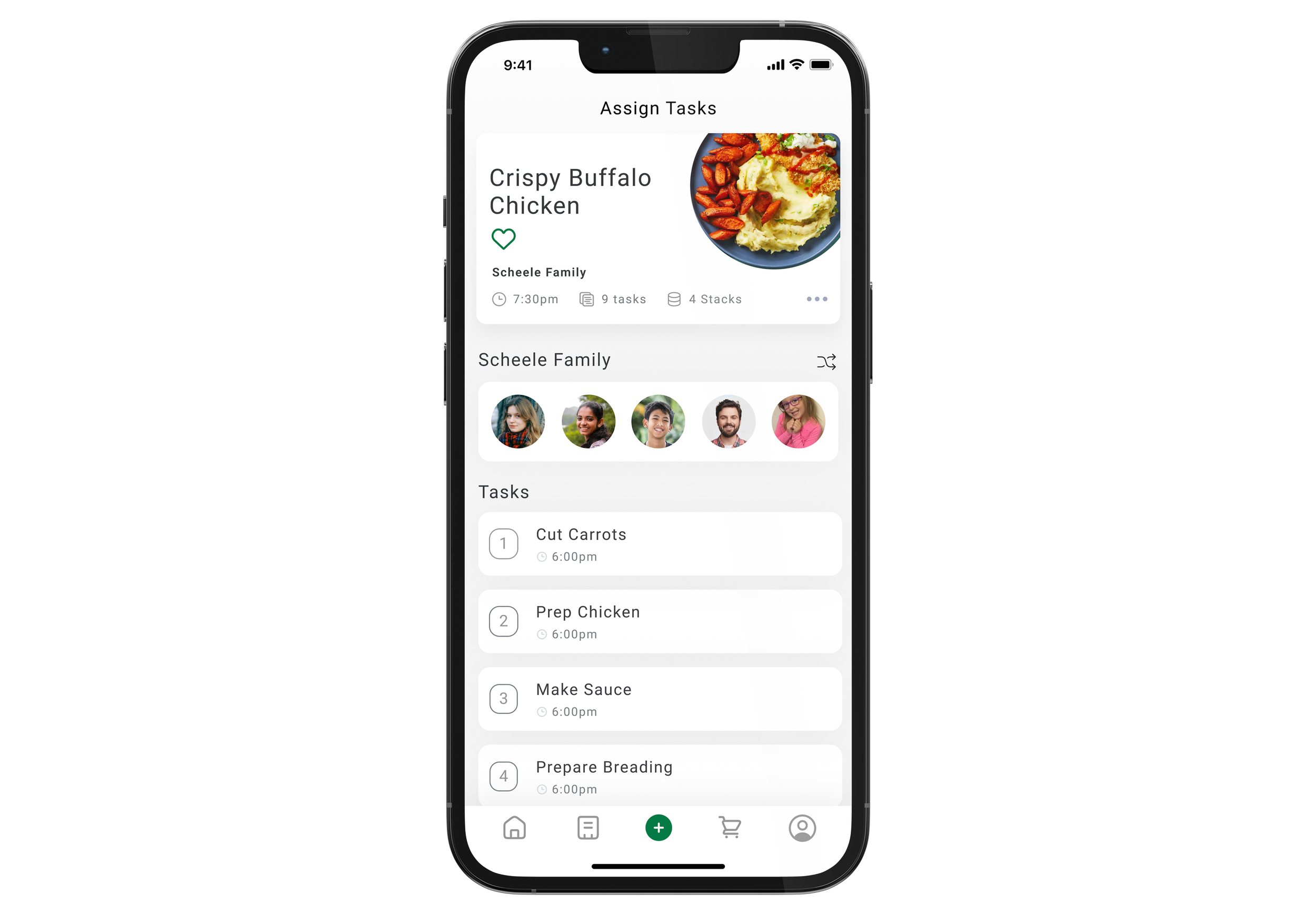 An App that divides up the steps needed to prepare and cook a meal to different family members.