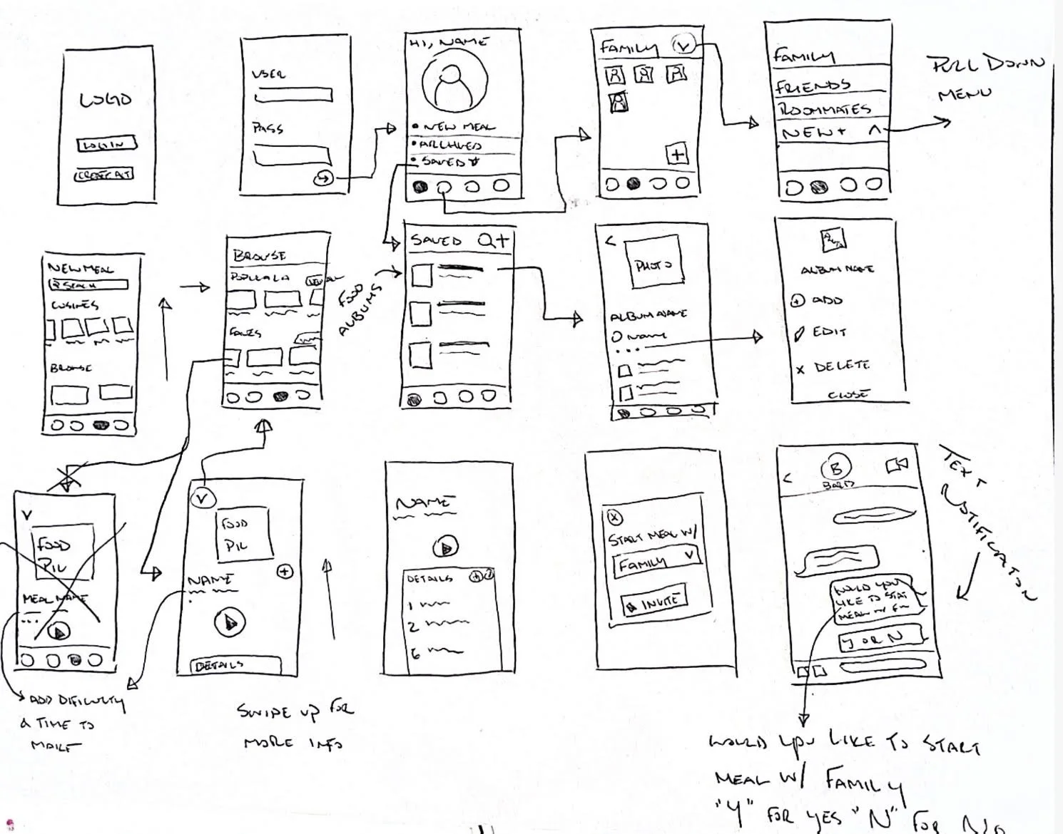 This application will encourage more families to cook together by targeting the root causes of why families do not cook together, organizing the preparation process, and allowing more family members to get involved in the cooking process. The goal of this app is to get more family members involved in preparing group meals in order to relieve the stress and workload of others and be able to enjoy quality time enjoying their meal together.