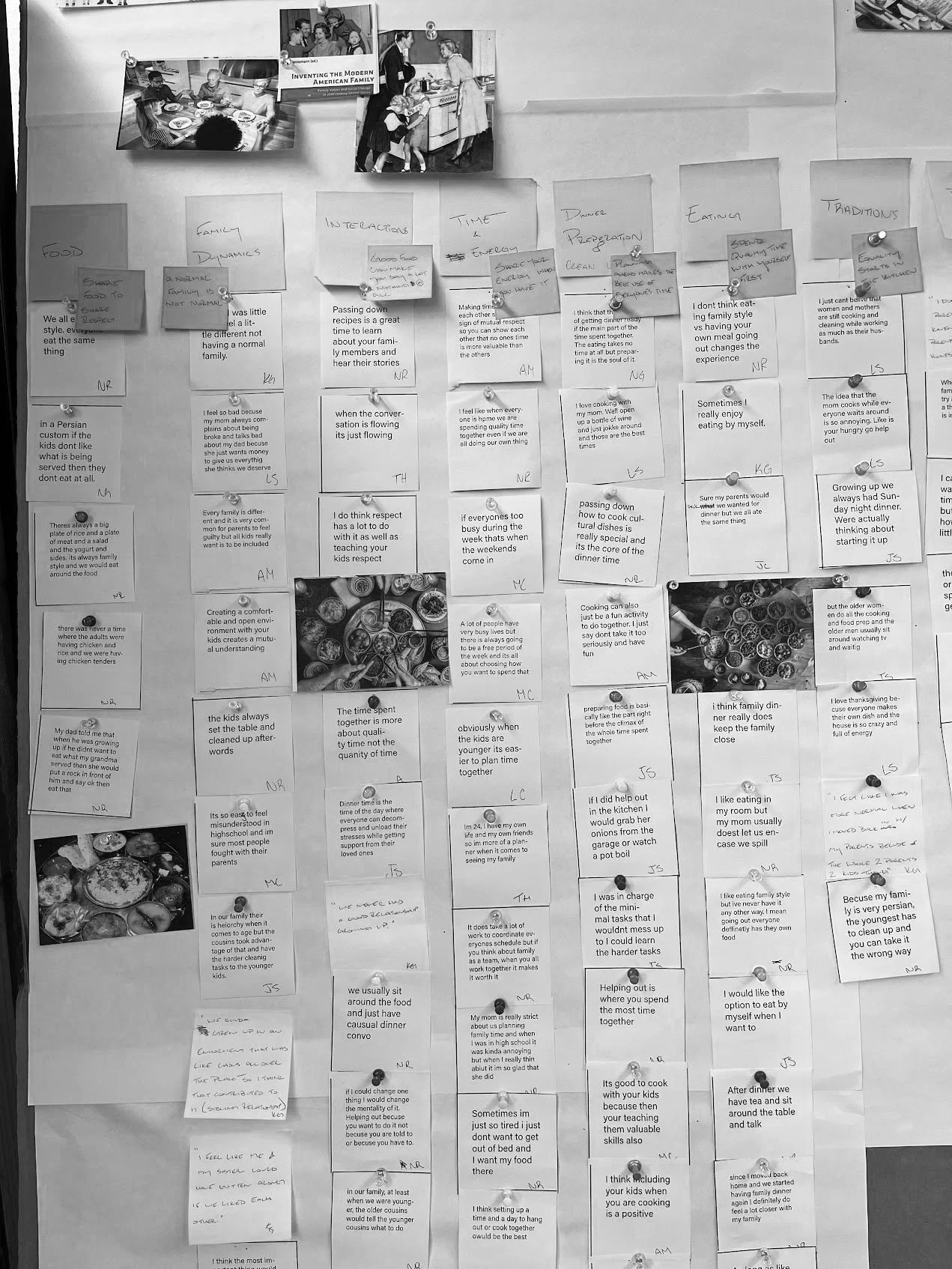 Clear trends began to emerge when we synthesized the data from our survey responses. I started noticing a common theme that many families don’t cook together because of how hectic it can get in the kitchen. many families are also very busy with their own schedules with work and school and it makes it difficult to come together.