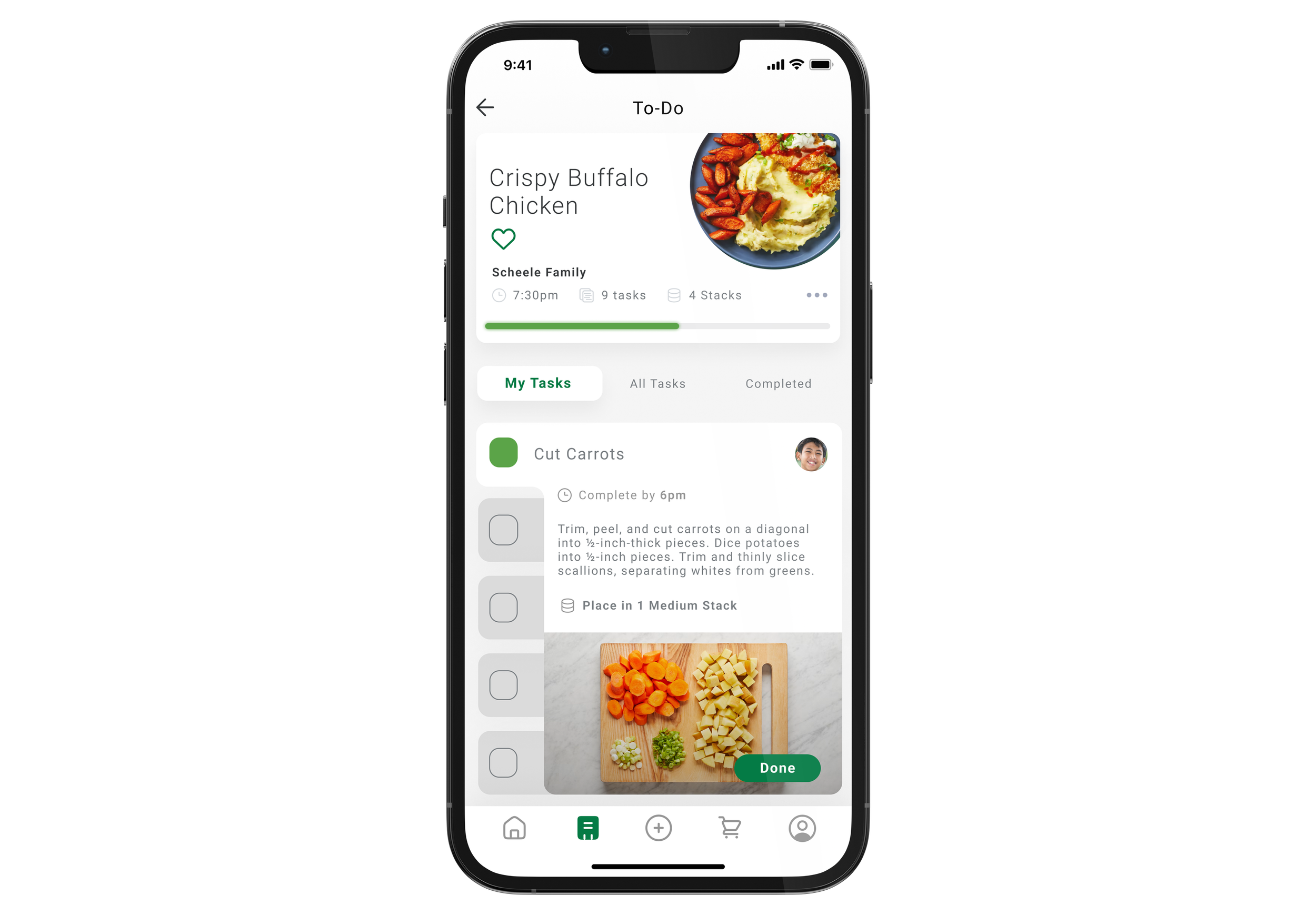 A collaborative cooking app presented by Hello Fresh that allows families and people living together to easily prepare meals together.
