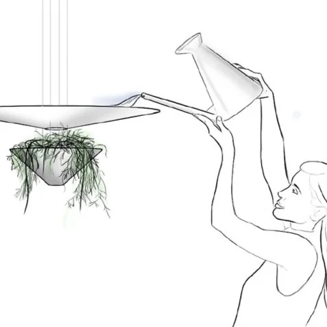 Vesa’s reflective glass light shade doubles as an exaggerated funnel to make watering your plants easier than ever